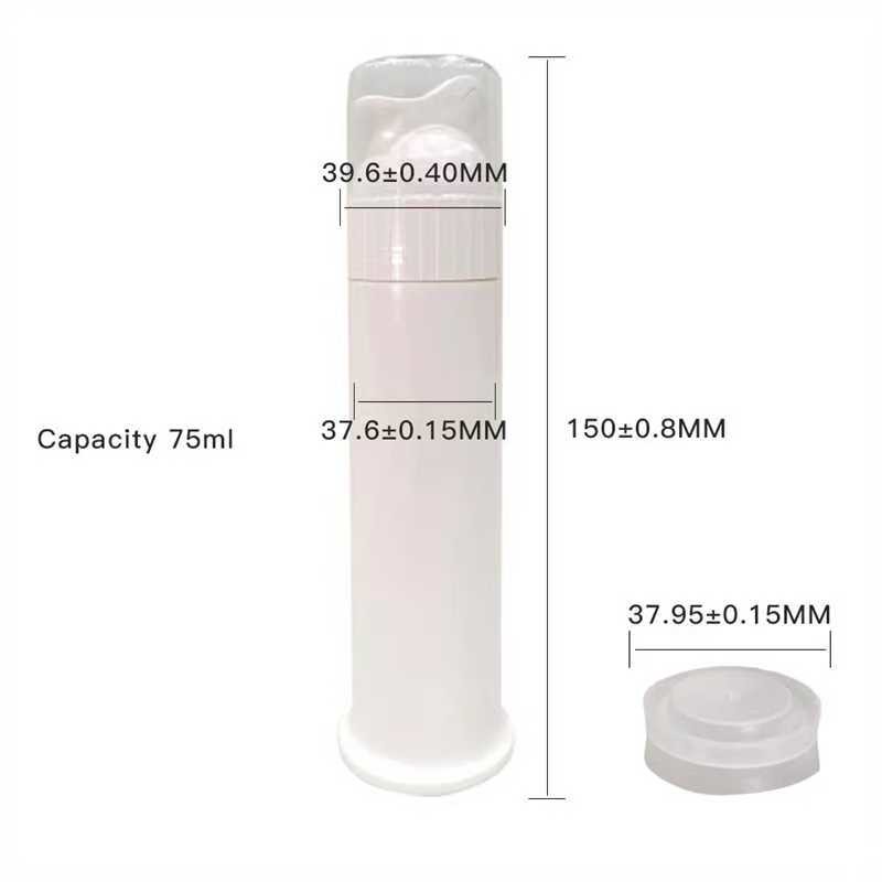 Botol pompa pasta gigi tanpa udara anti bocor kami terbuat dari bahan PP food-grade berkualitas tinggi, memastikan keamanan, daya tahan, dan keandalan. Dirancang dengan sistem pompa tanpa udara, botol-botol ini memberikan pengeluaran yang presisi sekaligus mencegah kontaminasi dan pemborosan produk. Kapasitas 75ml sangat ideal untuk pasta gigi, produk perawatan mulut, dan formulasi kental lainnya. Menampilkan kinerja penyegelan yang sangat baik, botol-botol ini ramah perjalanan dan bebas berantakan. Pilihan pelabelan khusus tersedia, menjadikannya sempurna untuk merek label pribadi, penggunaan promosi, dan pengemasan ritel.